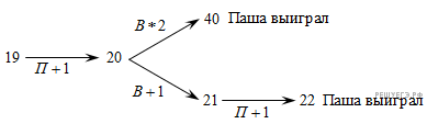 Два игрока, Паша и Валя, играют в следующую игру. Перед игроками лежит куча камней. Игроки ходят по очереди, первый ход делает Паша. За один ход игрок может добавить в кучу 1 камень или удвоить количество камней в куче. Например, имея кучу из 7 камней, за один ход можно получить кучу из 8 или 14 камней. У каждого игрока, чтобы делать ходы, есть неограниченное количество камней. Игра завершается в тот момент, когда количество камней в куче S становится не менее 22. Победителем считается игрок, сделавший последний ход, если в куче осталось не менее 22 камней, но не больше 34 камней. Если же после завершающего хода игрока в куче оказывается больше 34 камней, то игрок, сделавший последний ход — проигрывает.