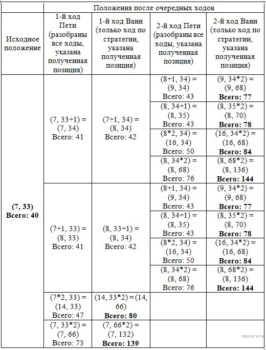 Два игрока, Петя и Ваня, играют в следующую игру. Перед игроками лежат две кучи камней. Игроки ходят по очереди, первый ход делает Петя. За один ход игрок может добавить в одну из куч (по своему выбору) один камень или увеличить количество камней в куче в два раза. Например, пусть в одной куче 10 камней, а в другой 7 камней; такую позицию в игре будем обозначать (10, 7). Тогда за один ход можно получить любую из четырёх позиций: (11, 7), (20, 7), (10, 8), (10, 14). Для того чтобы делать ходы, у каждого игрока есть неограниченное количество камней.