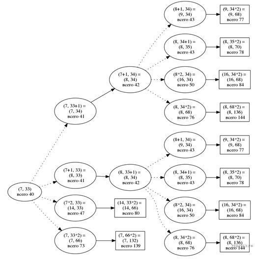 Задание 3. Для начальной позиции (7, 33) укажите, кто из игроков имеет выигрышную стратегию. Опишите выигрышную стратегию; объясните, почему эта стратегия ведёт к выигрышу, и укажите, какое наибольшее количество ходов может потребоваться победителю для выигрыша при этой стратегии. Постройте дерево всех партий, возможных при указанной Вами выигрышной стратегии. Представьте дерево в виде рисунка или таблицы.