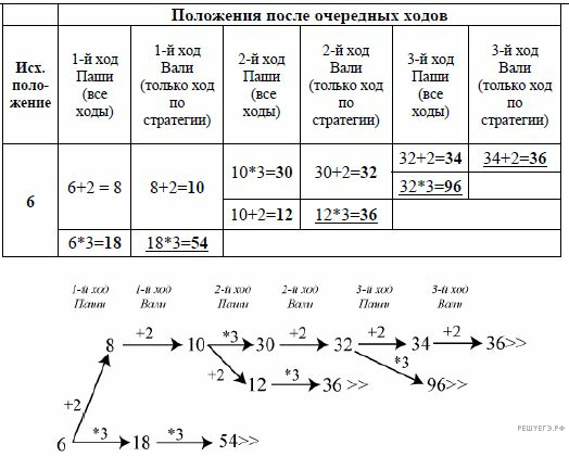Два игрока, Паша и Валя, играют в следующую игру. Перед игроками лежит куча камней. Игроки ходят по очереди, первый ход делает Паша. За один ход игрок может добавить в кучу два камня или увеличить количество камней в куче в три раза. Например, имея кучу из 15 камней, за один ход можно получить кучу из 17 или 45 камней. У каждого игрока, чтобы делать ходы, есть неограниченное количество камней.