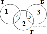 Построим диаграмму Венна для данной задачи. Количество запросов в данной области будем обозначать Ni. Наша цель — найти сумму N5.