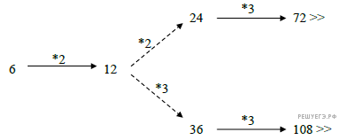 | 6 | 6*2 = 12 | 12*2 = 24 | 24*3 = 72 |