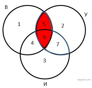 Построим диаграмму Венна для данной задачи. Количество запросов в данной области будем обозначать Ni. Наша цель — найти сумму N5+N6.