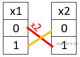 Рассмотрим, при каких значениях x1, x2 и y1 истинно первое уравнение.