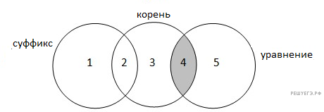 Представим таблицу в виде кругов Эйлера. Пусть суффикс — круг 1, корень — круг 3, уравнение — круг 5. Тогда задача — найти количество элементов N в области 4: N4. По таблице известно: