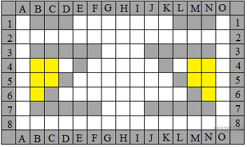 Разбиться Машинка может только при выполнении команд "вверх" и "вправо". Начав из любой клетки столбцов A, G, H, I, O, и клеток B2−F2, D4, J4−J6, K5−K6, L6, L4, машинка разобьётся, выполняя команду вправо. Стартовав из клеток B4−B6, C4−C5, N4−N6, М4−М5 машинка не разобьётся.