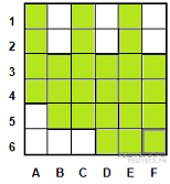 Число клеток, не удовлетворяющих условию задачи равно 8: A5, A6, B6, C6, D1, D2, F1, F2. Поэтому, число клеток, удовлетворяющих условию задачи равно 36 - 8 = 28.