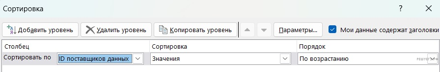 Далее нам надо разделить данные в столбце «ID поставщиков данных» для тех процессов, где есть зависимость от двух процессов. Для этого выделим