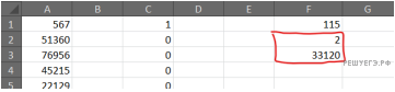 =если(И(C1+C2=1;остат(A1+A2;F1)=0;A1+A2;"").