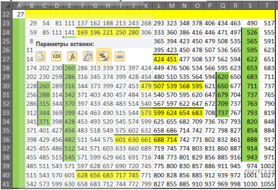 После чего скопируем содержимое данных ячеек и вставим в пустые ячейки с соответствующими цветами.