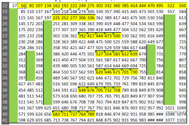 | 41 | 542 | 573 | 599 | 630 | 658 | 683 | 712 | 744 | 772 | 799 | 827 | 855 | 885 | 910 | 937 | 969 | 998 | 1030 | 1055 |