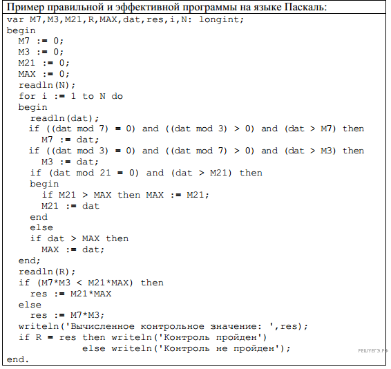 После того как все данные прочитаны, искомое контрольное значение вычисляется как максимум из произведений М21*MAX и М7*М3.