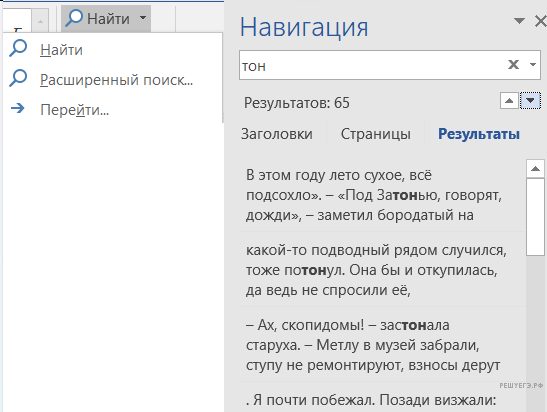Воспользуемся поисковыми средствами текстового редактора. В строке введем «тон», получим