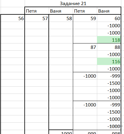 Первое такое значение S — 57. Своим первым ходом Петя может получить позиции