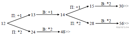Два игрока, Петя и Ваня, играют в следующую игру. Перед игроками лежит куча камней. Игроки ходят по очереди, первый ход делает Петя. За один ход игрок может добавить в кучу один камень или увеличить количество камней в куче в два раза. Например, имея кучу из 15 камней, за один ход можно получить кучу из 16 или 30 камней. У каждого игрока, чтобы делать ходы, есть неограниченное количество камней. Игра завершается в тот момент, когда количество камней в куче становится не менее 29. Победителем считается игрок, сделавший последний ход, то есть первым получивший кучу, в которой будет 29 или больше камней. В начальный момент в куче было S камней, 1 ≤ S ≤ 28.