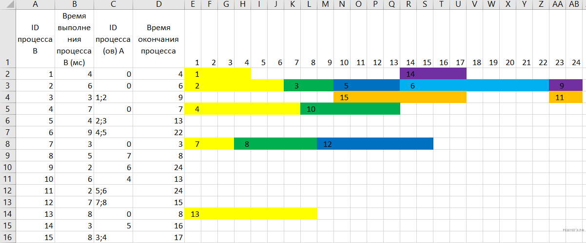 Далее рассчитаем время выполнения оставшихся процессов: