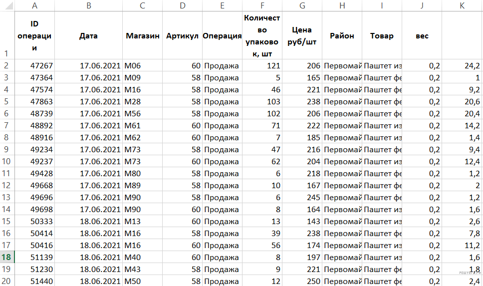 Воспользуемся стандартными средствами редактора Microsoft Excel: требуется отфильтровать записи в таблице, оставив только записи для товара «Паштет», тип операции «Продажа», дата