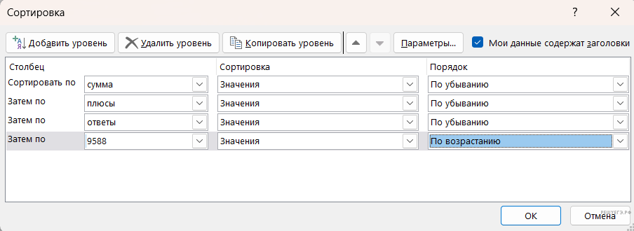 Выделим все столбы и сделаем настраиваемую сортировку.