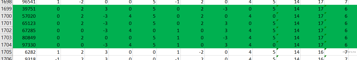 Определим количество участников, у которых все три показателя такие же, как у участника, занявшего в итоговой таблице 1700 место (включая самого этого участника)