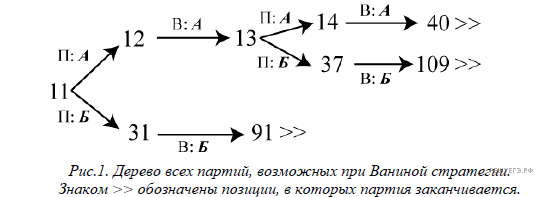 | Исх. полож. | 1‐й ход Пети (разобраны все ходы) | 1‐й ход Вани (только ход по стратегии) | 2‐й ход Пети (разобраны все ходы) | 2‐й ход Вани (только ход по стратегии) |