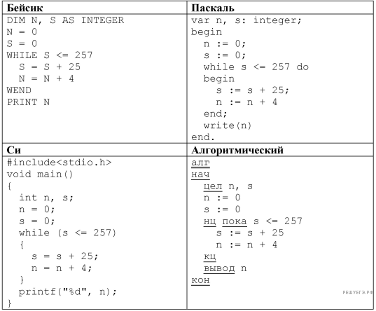 Определите число, которое будет напечатано в результате выполнения программы (записанной ниже на разных языках программирования):