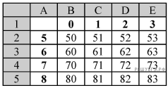 Для этого сначала в диапазоне В1:К1 он записал числа от 0 до 9, и в диапазоне А2:А5 он записал числа от 5 до 8. Затем в ячейку В2 записал формулу двузначного числа (А2 — число десятков; В1 — число единиц), после чего скопировал её во все ячейки диапазона В2:К5. В итоге получил таблицу двузначных чисел. На рисунке ниже представлен фрагмент этой таблицы.