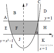 1.  Пе­ре­ри­суй­те и за­пол­ни­те таб­ли­цу, ко­то­рая по­ка­зы­ва­ет, как ра­бо­та­ет про­грам­ма при ар­гу­мен­тах, при­над­ле­жа­щих раз­лич­ным об­ла­стям (A, B, C, D, E, F, G, H, I, J, K). Точки, ле­жа­щие на гра­ни­цах об­ла­стей, от­дель­но не рас­смат­ри­вать. Ко­ор­ди­нат­ные оси не яв­ля­ют­ся гра­ни­ца­ми об­ла­стей. В столб­цах усло­вий ука­жи­те «да», если усло­вие вы­пол­нит­ся, «нет», если усло­вие не вы­пол­нит­ся, «—» (про­черк), если усло­вие не будет про­ве­рять­ся, «не изв.», если про­грам­ма ведёт себя по-раз­но­му для раз­ных зна­че­ний, при­над­ле­жа­щих дан­ной об­ла­сти. В столб­це «Про­грам­ма вы­ве­дет» ука­жи­те, что про­грам­ма вы­ве­дет на экран. Если про­грам­ма ни­че­го не вы­во­дит, на­пи­ши­те «—» (про­черк). Если для раз­ных зна­че­ний, при­над­ле­жа­щих об­ла­сти, будут вы­ве­де­ны раз­ные тек­сты, на­пи­ши­те «не изв.». В по­след­нем столб­це ука­жи­те «да» или «нет».