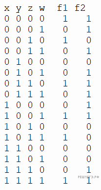 Определите, какому столбцу таблицы истинности соответствует каждая из переменных w, x, y, z.