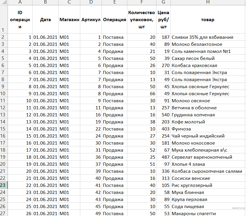 Таблица «Торговля» содержит записи о поставках и продажах товаров в магазинах города в июне 2021 г. Таблица «Товар» содержит данные о товарах. Таблица «Магазин» содержит данные о магазинах.