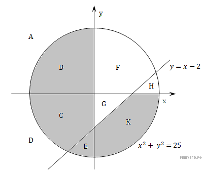 1. Перерисуйте и заполните таблицу, которая показывает, как работает программа при аргументах, принадлежащих различным областям (A, B, C, D, E, F, G, H, I, J, K). Точки, лежащие на границах областей, отдельно не рассматривать. Координатные оси не являются границами областей. В столбцах условий укажите «да», если условие выполнится, «нет», если условие не выполнится, «—» (прочерк), если условие не будет проверяться, «не изв.», если программа ведёт себя по-разному для разных значений, принадлежащих данной области. В столбце «Программа выведет» укажите, что программа выведет на экран. Если программа ничего не выводит, напишите «—» (прочерк). Если для разных значений, принадлежащих области, будут выведены разные тексты, напишите «не изв.». В последнем столбце укажите «да» или «нет».