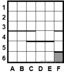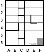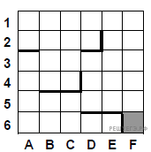 Сколько клеток лабиринта соответствуют требованию, что, начав движение в этой клетке и выполнив предложенную программу, РОБОТ уцелеет и остановится в закрашенной клетке (клетка F6)?