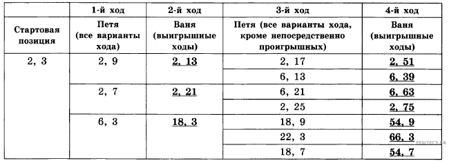 Два игрока, Петя и Ваня, играют в следующую игру. Перед ними лежат две кучки камней, в первой из которых 4, а во второй - 3 камня. У каждого игрока неограниченно много камней. Игроки ходят по очереди, первый ход делает Петя. Ход состоит в том, что игрок или утраивает число камней в какой-то куче, или добавляет 1 камень в какую-то кучу. Игра завершается в тот момент, когда общее количество камней в двух кучах становится не менее 20. Если в момент завершения игры общее число камней в двух кучах не менее 35, то выиграл Ваня, в противном случае - Петя. Кто выигрывает при безошибочной игре обоих игроков? Укажите, стратегию выигрывающего игрока - какой ход он должен сделать в каждой из позиций, которые могут ему встретиться при правильной игре. Докажите, что описанная стратегия - выигрышная.