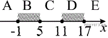 1. Перерисуйте и заполните таблицу, которая показывает, как работает программа при аргументах, принадлежащих различным областям (A, B, C, D и E). Границы (точки –1, 5, 11 и 17) принадлежат заштрихованным областям (B и D соответственно).