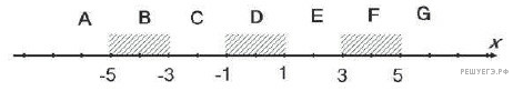 1. Перерисуйте и заполните таблицу, которая показывает, как работает программа при аргументах, принадлежащих различным областям (A, B, C, D и E). Границы (точки –3, 1, 5 и 9) принадлежат заштрихованным областям (B и D соответственно).