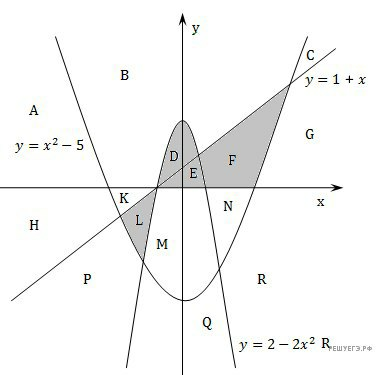 | Область | Условие 1 (у >= x+1) | Условие 2 (y <= 2−2*x*x) | Условие 3 (y >= x*x−5) | Вывод | Верно |