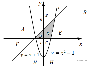 | Область | Условие 1 (y<=x+1) | Условие 2 (y>=x*x-1) | Программа выведет | Область обрабатывается верно |