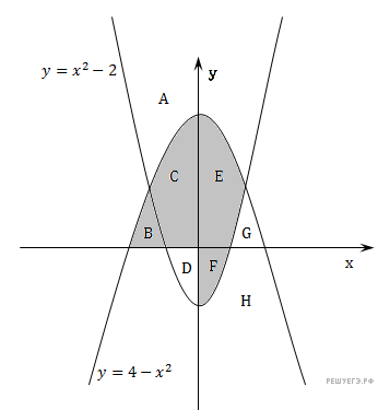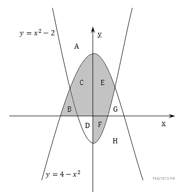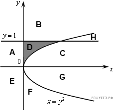1. Перерисуйте и заполните таблицу, которая показывает, как работает программа при аргументах, принадлежащих различным областям (А, В, С, D, Е, F, G, Н). Точки, лежащие на границах областей, отдельно не рассматривать. Границами областей А и Н являются параболы и ось Оу.