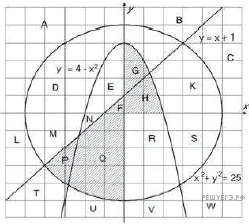 var x, у: real; begin readln(x,y); if x*x + y*y <= 25 then if y <= 4 - x*x then if y <= x+1 then write('принадлежит') else write('не принадлежит') end. | INPUT х, у IF x*x + у*у <= 25 THEN IF y <= 4 - x*x THEN IF y <= x + 1 THEN PRINT "принадлежит" ELSE PRINT "не принадлежит" ENDIF END IF END IF END |