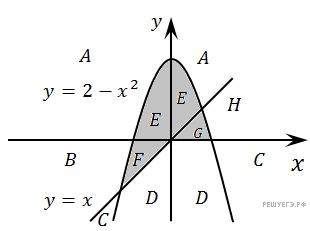 1. Заполните таблицу, которая показывает, как работает программа при аргументах, принадлежащих различным областям (A, B, C, D, E, F, G и H). Точки, лежащие на границах областей, отдельно не рассматривать.