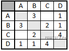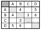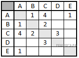 В таблице приведена стоимость перевозки пассажиров между соседними населенными пунктами. Укажите схему, соответствующую таблице.