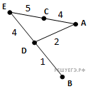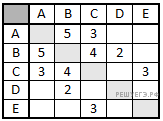 В таблице приведена стоимость перевозки пассажиров между соседними населенными пунктами. Укажите схему, соответствующую таблице.