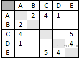 В таблице приведена стоимость перевозок между соседними железнодорожными станциями. Укажите схему, соответствующую таблице.