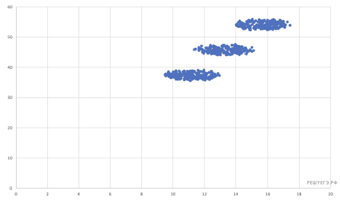 В файле А хранятся данные о звёздах двух кластеров. В каждой строке записана информация о расположении на карте одной звезды: сначала координата x, затем координата y (в условных единицах). Известно, что количество звёзд не превышает 1000. В файле Б хранятся данные о звёздах трёх кластеров. Известно, что количество звёзд не превышает 10 000. Структура хранения информации о звездах в файле Б аналогична файлу A. Возможные данные одного из файлов иллюстрированы графиком.